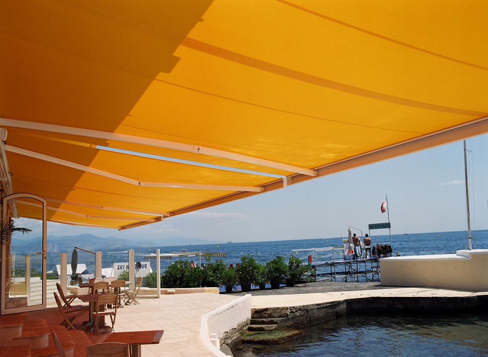 Elemento mecánico que se coloca en el exterior o interior de un balcón o ventana para proteger ambientes de la luz o el calor.